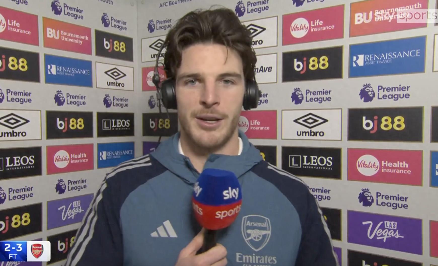 英超第20輪,阿森納客場3-2擊敗伯恩茅斯,此役上演梅開二度的賴斯賽後接受了天空體育的採訪。