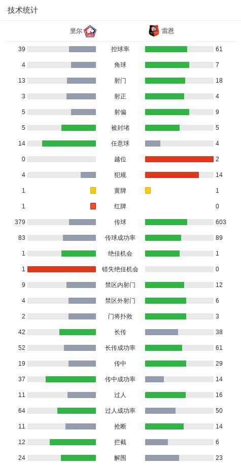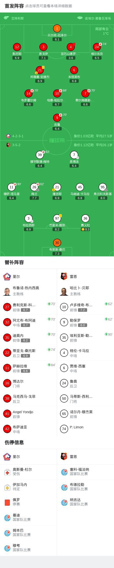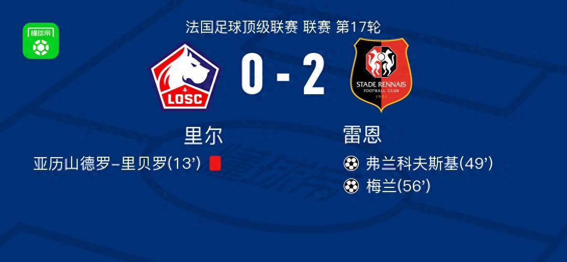 北京時間1月4日,法國足球頂級聯賽第17輪,里爾主場迎戰雷恩。比賽中,里爾球員亞歷山德羅-裏貝羅被罰離場。隨後雷恩抓住機會,布拉西耶送出助攻,弗蘭科夫斯基破門得分。下半場,恩博洛完成助攻,梅蘭再入一球。最終全場比賽結束,里爾0-2不敵雷恩。
