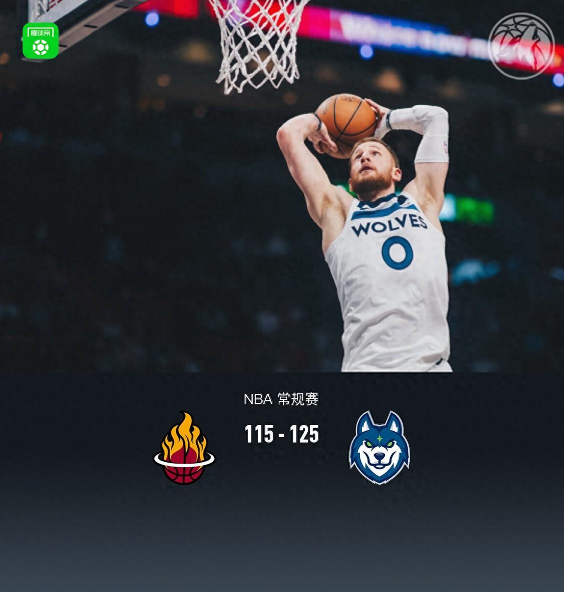 北京時間1月4日NBA 常規賽,邁阿密熱火對陣明尼蘇達森林狼。半場熱火50-56森林狼,最終熱火115-125森林狼。