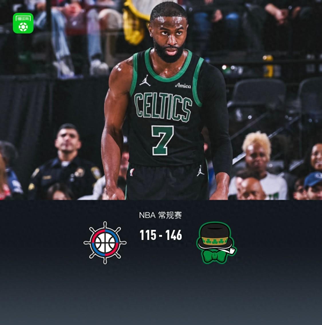 凱爾特人146-115終結快船6連勝,布朗50分,小瓊斯傷退