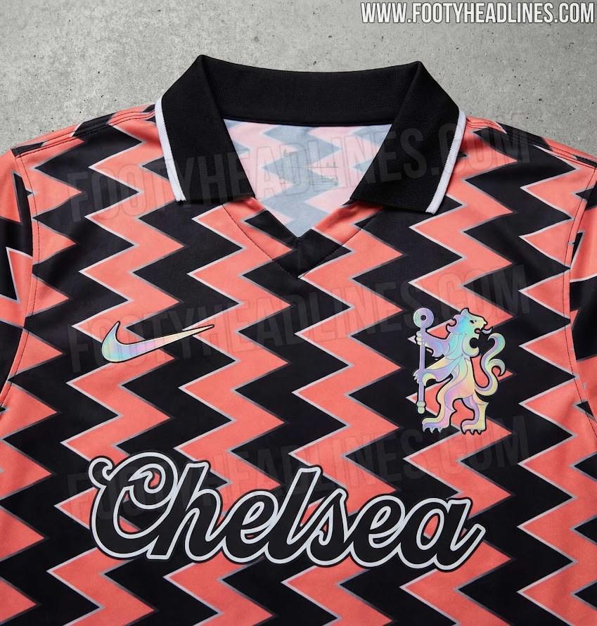 耐克一反傳統,沒有采用切爾西俱樂部的官方徽章,而是使用了獅子圖案。耐克標誌和獅子圖案都採用了虹彩效果,隨着光線變化呈現出閃爍變幻的色彩。另一個引人注目的細節是贊助商區域,傳統的贊助商標誌被“Chelsea”字樣取代,採用經典流暢的字體書寫,強化了球衣的復古風格。
