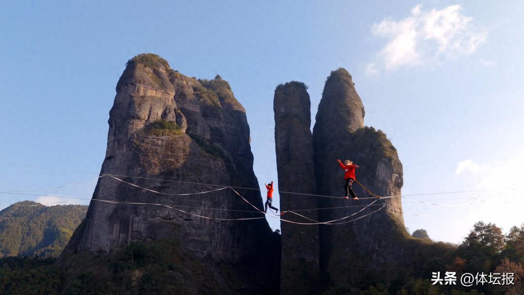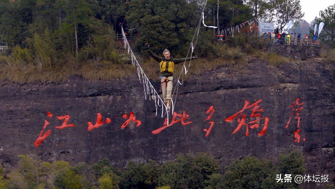 “江郎山的風景很漂亮,熱身時我常常會坐在扁帶上欣賞眼前的美景,比賽中看着賽道旁‘江山如此多嬌’五個字我也很受鼓舞。”李良鵬說。比賽最後,部分運動員換裝亮相,裝扮成“財神爺”、“哪吒”、“書生”等形象,再次踏上高空扁帶,以輕盈的步伐、靈動的肢體動作演繹着別開生面的主題情境。