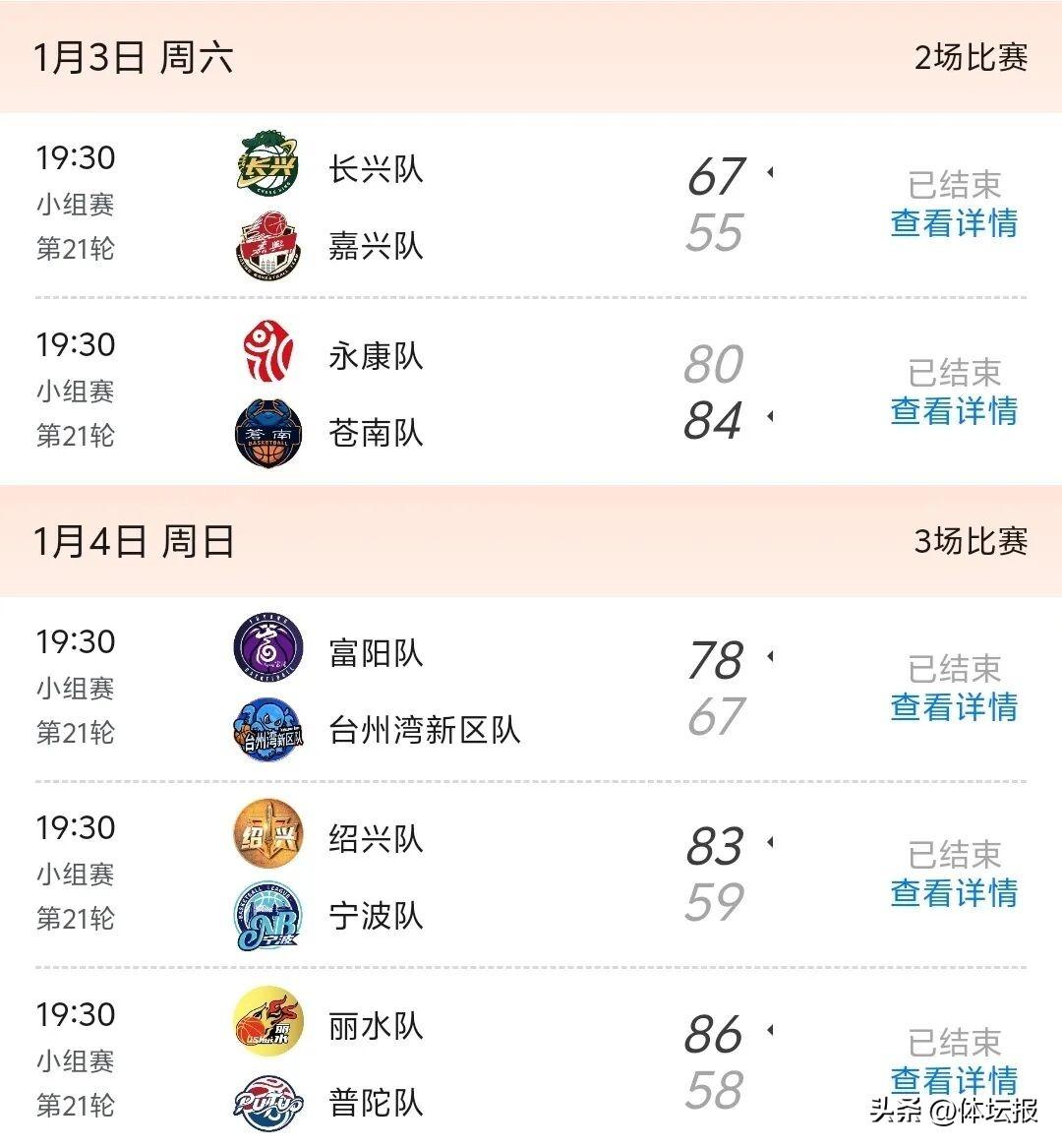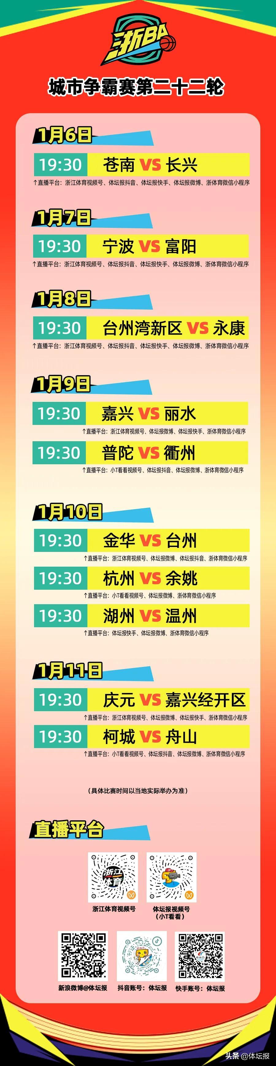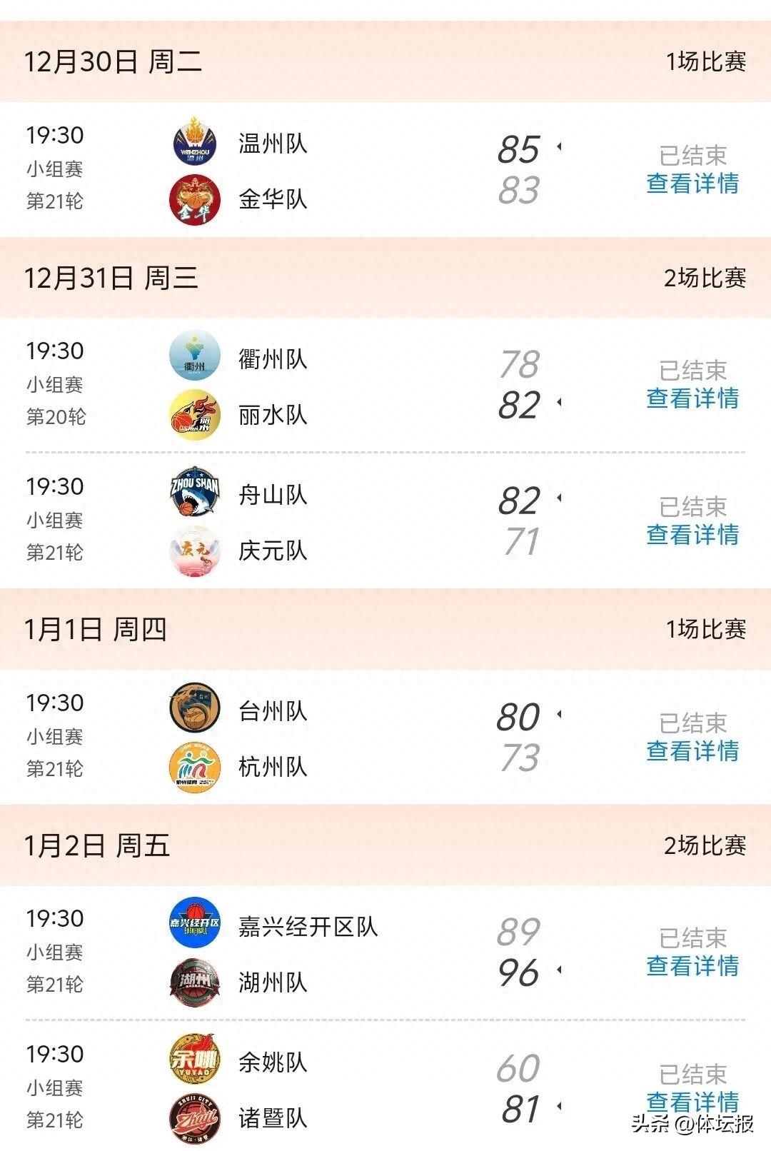 本週(1月5日-1月11日),浙BA城市爭霸賽將進行第二十二輪的對決。