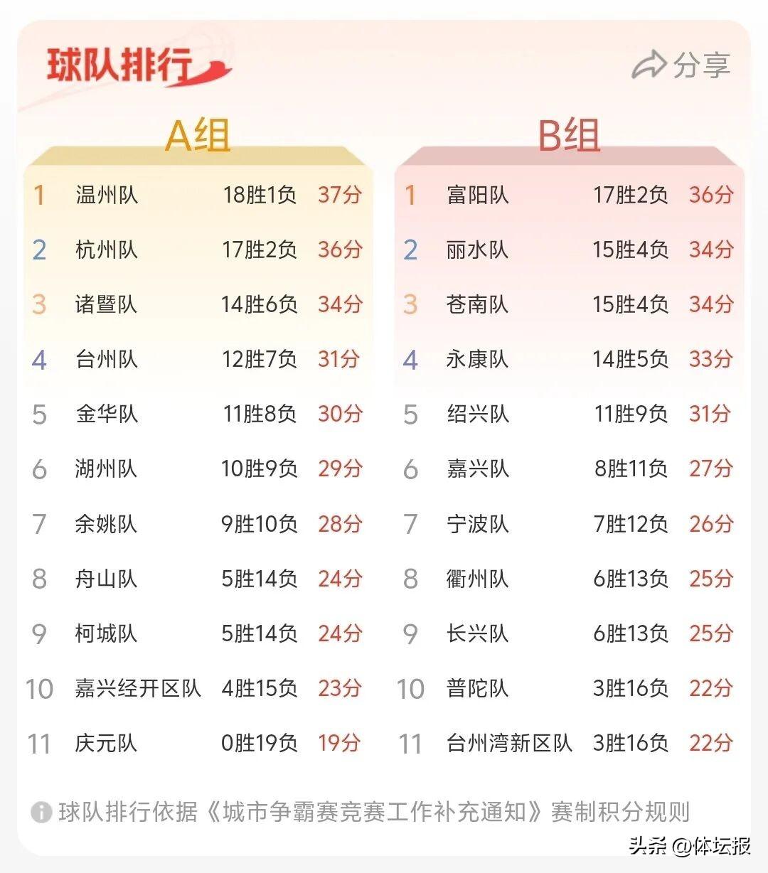 來源:體壇報、浙BA、浙江省籃球協會等