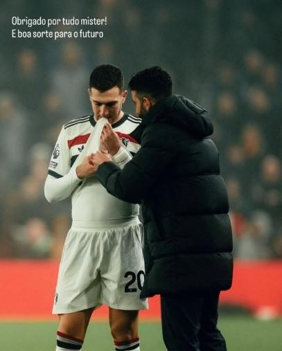 達洛特在社媒曬出他與阿莫林的同框照並配文:感謝您所做的一切,教練!祝您未來好運。