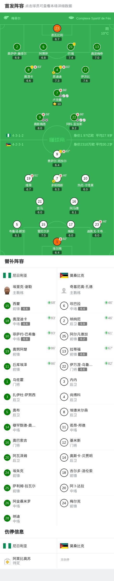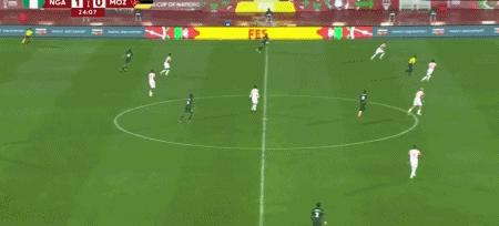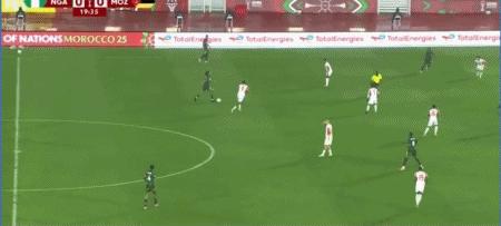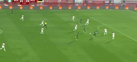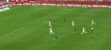 第20分鐘,阿科-亞當斯橫傳中路,盧克曼推射破門,尼日利亞1-0莫桑比克