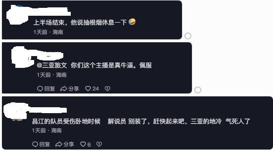 北京時間1月4日晚,“啓航自貿港”第一屆海南省城市足球聯賽(簡稱“瓊超”)第6輪角逐,三亞隊主場2-2戰平昌江隊。比賽直播期間,解說員的一番“激動”言論引發了一定的爭議。