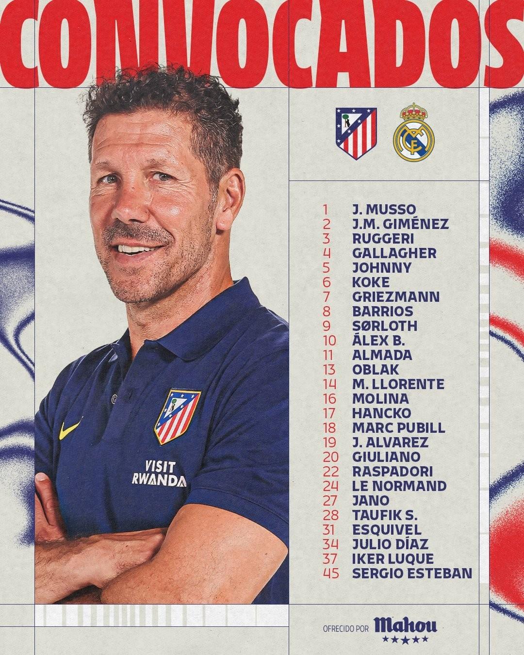 北京時間1月9日凌晨3點,西班牙超級盃半決賽,馬競將對陣皇馬。賽前,馬競官方公佈了球隊參加西超杯的球員名單。