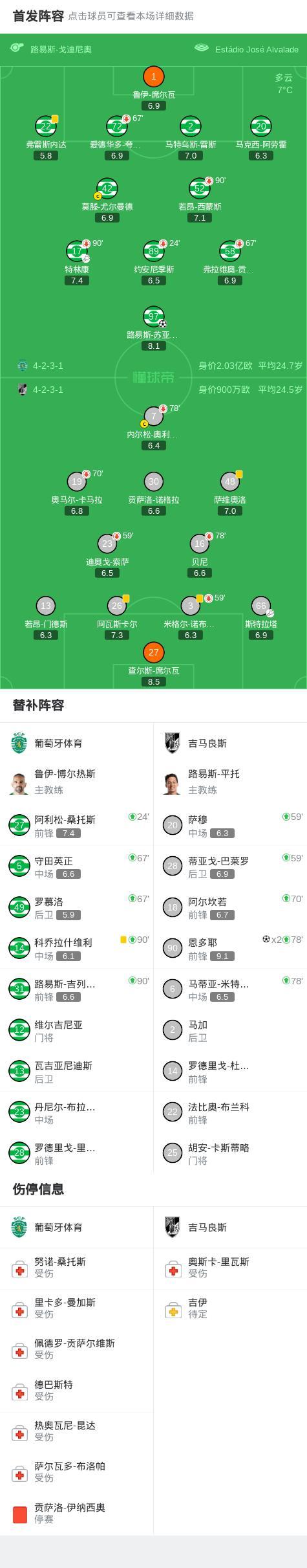 下半場補時第2分鐘,吉馬良斯球員斯特拉塔助攻恩多耶打入一球。