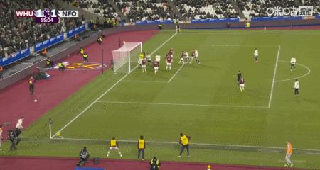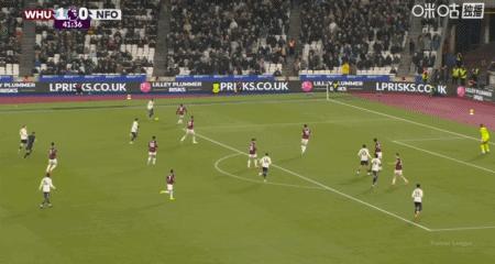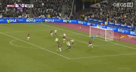 第13分鐘,角球開出,穆裏略不慎將球頂進自家球門,西漢姆聯1-0