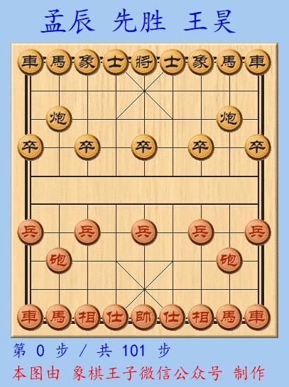 其後,孟辰在執先手與象甲大師強將王昊的激鬥中,雙方馬炮殘棋血戰101步,紅方一馬定槽,一炮定將。