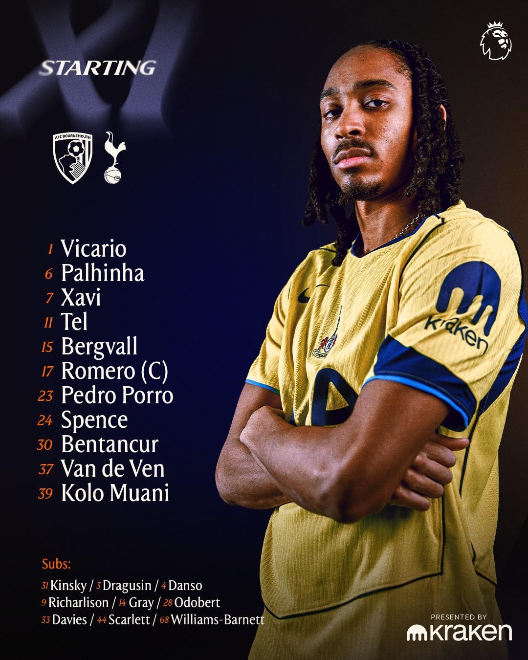 熱刺首發:1-維卡里奧、6-帕利尼亞、7-西蒙斯、11-馬蒂斯-特爾、15-盧卡斯-貝里瓦爾、17-克里斯蒂安-羅梅羅、23-波羅、24-斯彭斯、30-本坦庫爾、37-範德芬、39-穆阿尼