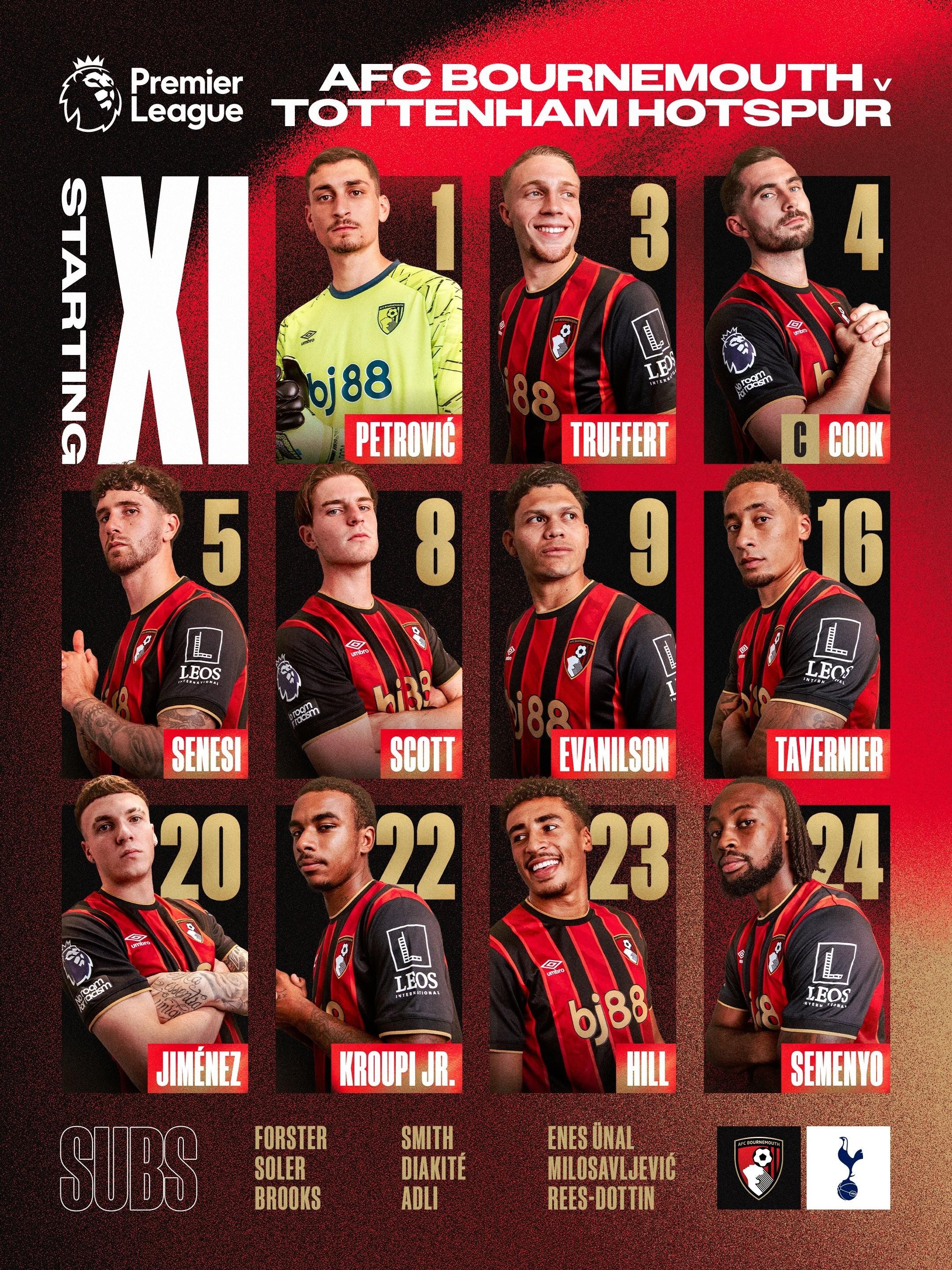 北京時間1月8日3:30,英超第21輪,熱刺客戰伯恩茅斯。賽前首發公佈。