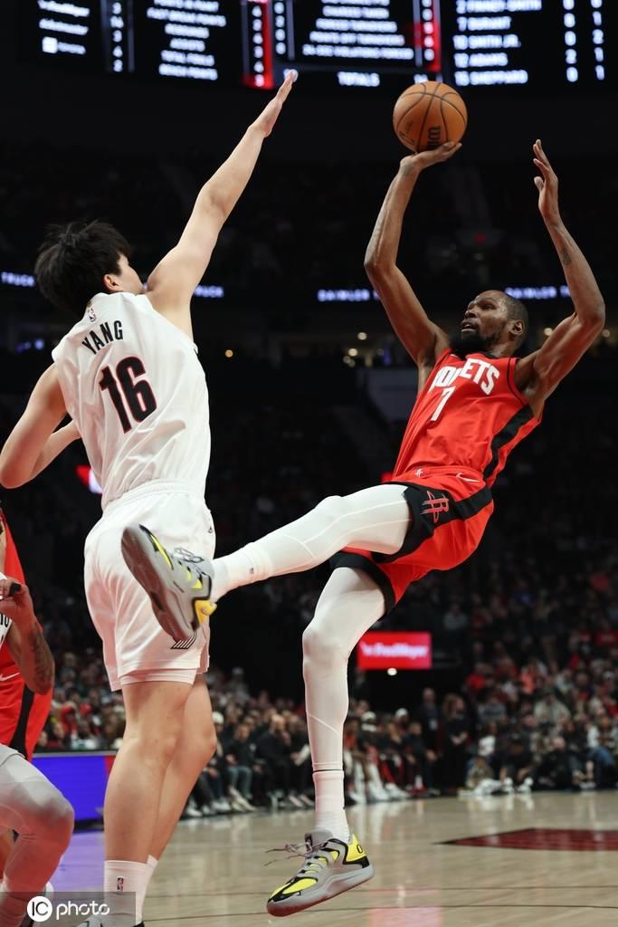 比賽開打,杜蘭特在半節球的時間裏就用自己的招牌跳投連中4球,可KD的四連擊卻沒有產生以點帶面的輻射效應,火箭隊除了KD,其他人基本都處在啞火狀態,單節打完,反倒是開拓者後來者居上,取得了比分上的領先。