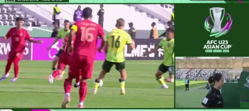 第29分鐘,裁判改判點球,阿拉吉奇點球破門,U23澳大利亞1-1泰國U23