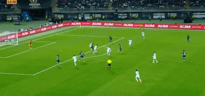 第45分鐘,馬賽反擊,努諾-門德斯回追將球斷下