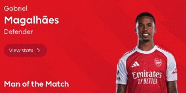 最終經過英超官網球迷投票,加布裏埃爾以35%的得票率當選全場最佳球員。