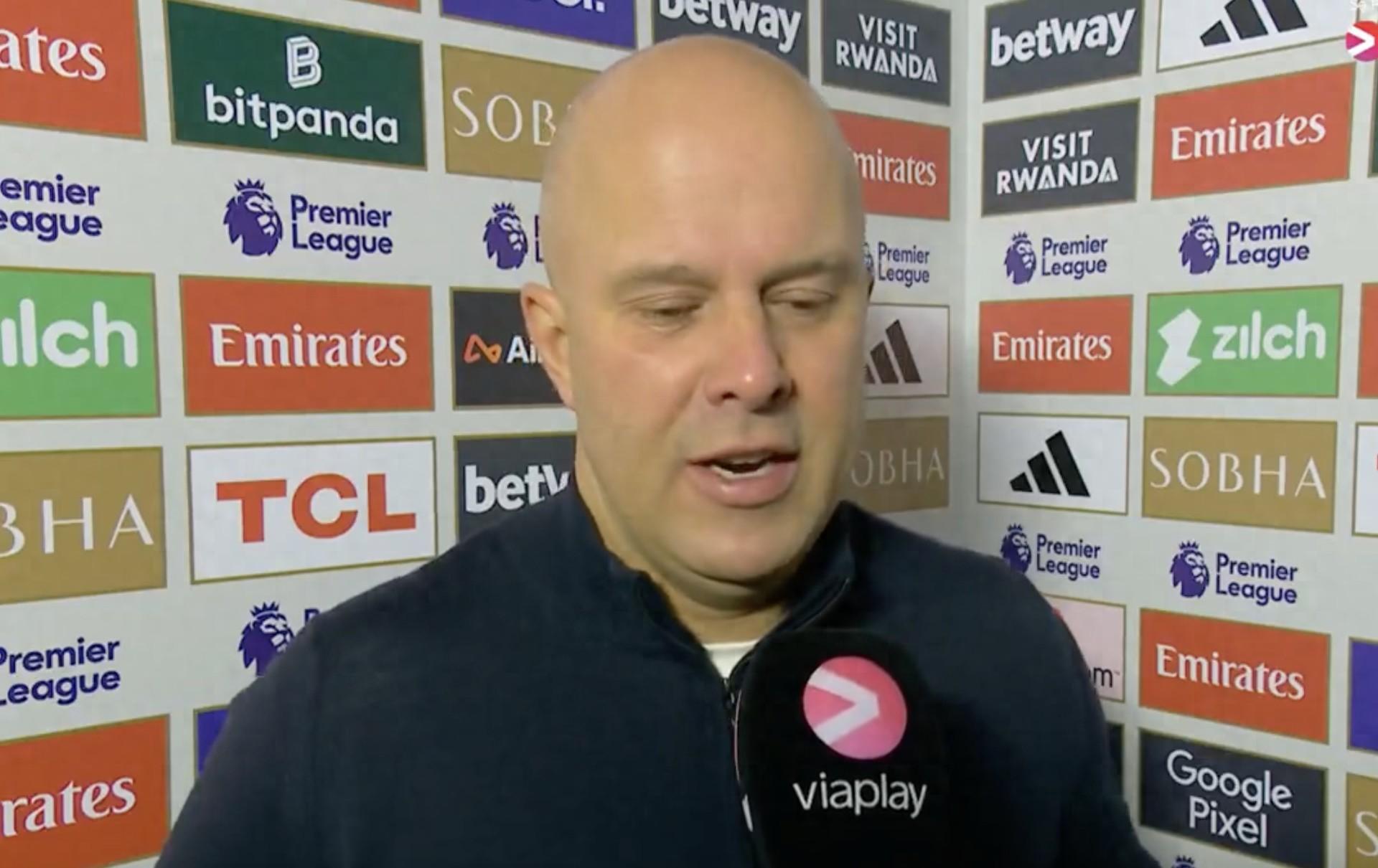 英超第21輪,利物浦客場0-0戰平阿森納,賽後,利物浦主帥斯洛特接受了Viaplay Fotball的採訪。