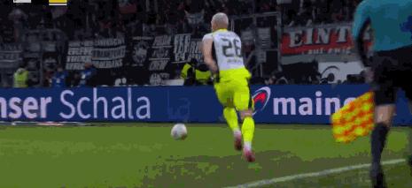 第22分鐘,吉拉西踢人送點,烏尊主罰命中,法蘭克福1-1