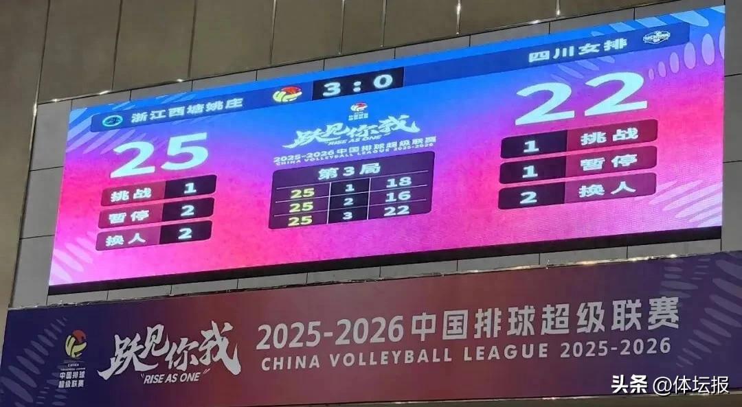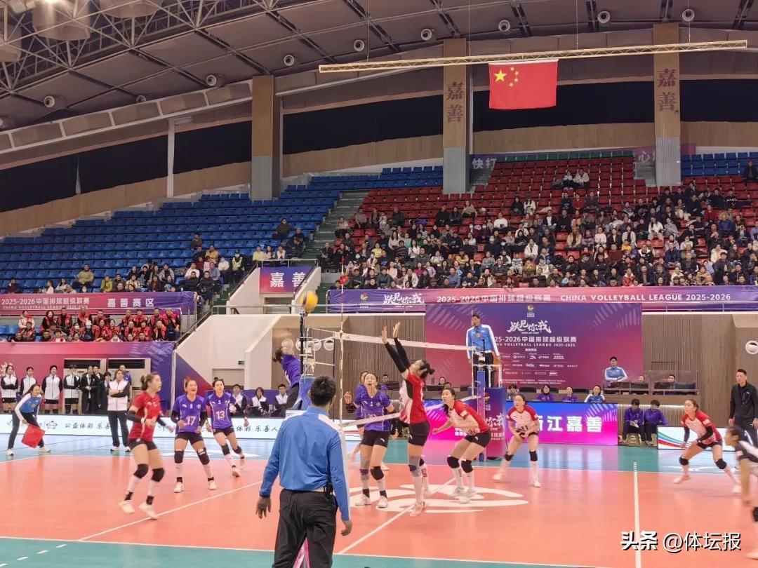 1月10日,2025-2026中國女子排球超級聯賽B級聯賽第九輪浙江西塘姚莊女排與四川女排的比賽在嘉善縣體育中心體育館打響。東道主浙江西塘姚莊女排大比分3∶0戰勝對手,主場5連勝!延續着本賽季主場不敗的紀錄。
