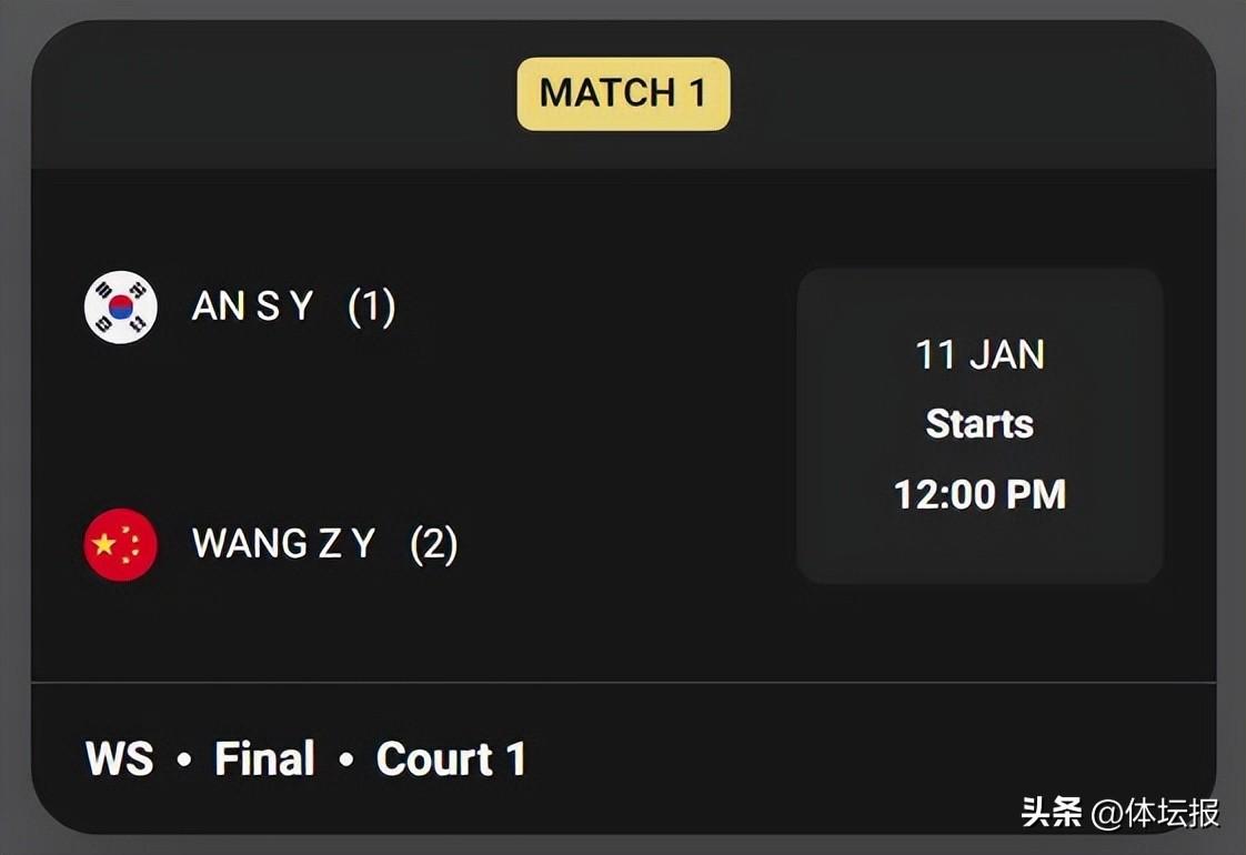 根據世界羽聯官網信息,明天的決賽預計將於北京時間12:00開打,王祉怡能否打破“八連敗”魔咒?拭目以待。