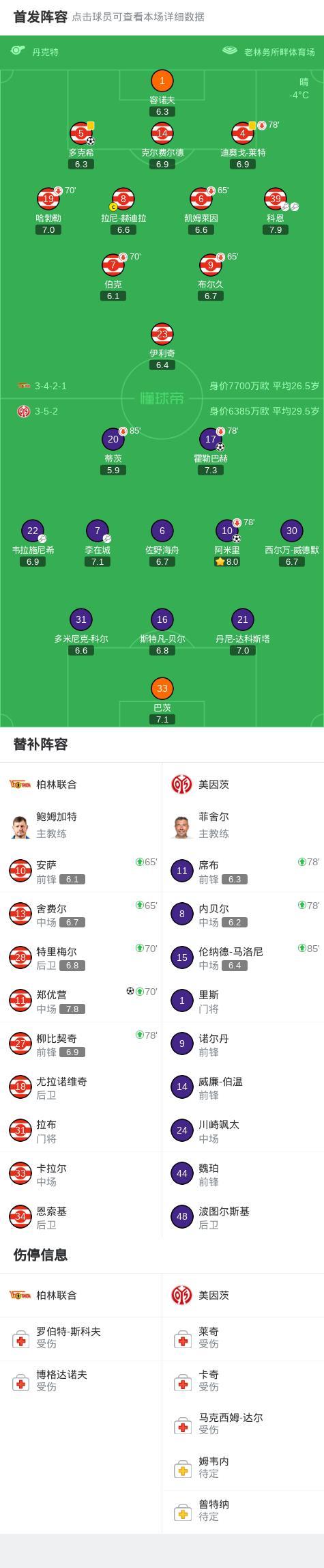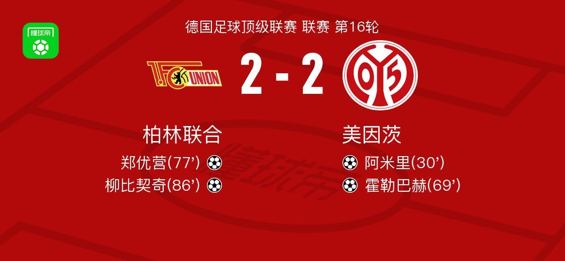 柏林聯合2-2美因茨,阿米里破僵,柳比契奇扳平比分