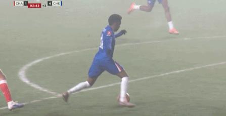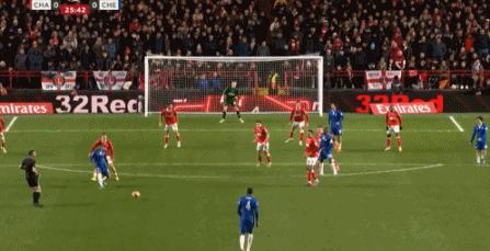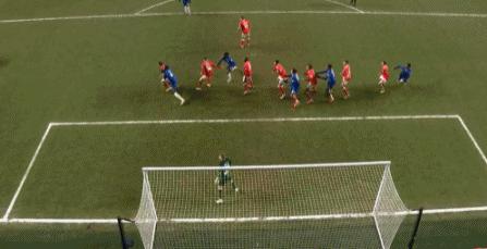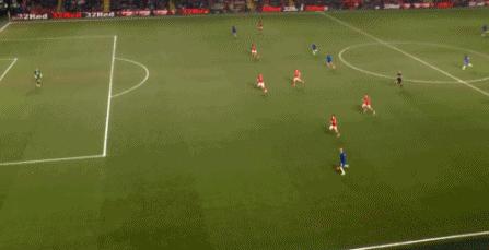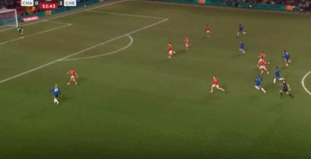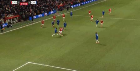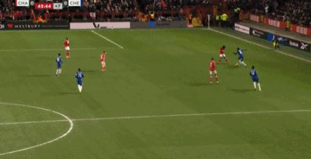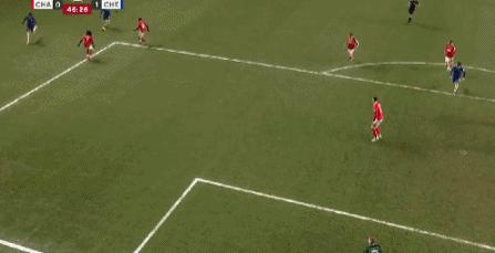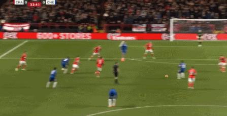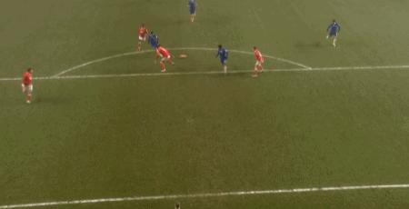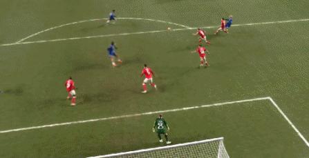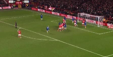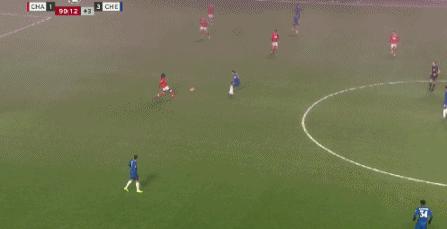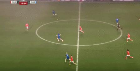 第90+1分鐘,內託禁區左路內切抽射破門,切爾西4-1查爾頓