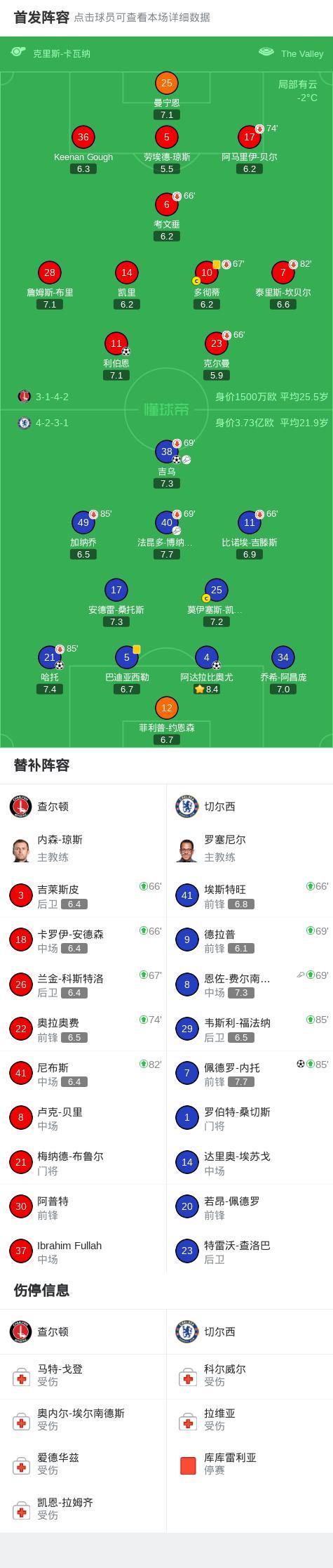 第50分鐘,阿達拉比奧尤禁區前點頭球破門,切爾西2-0查爾頓