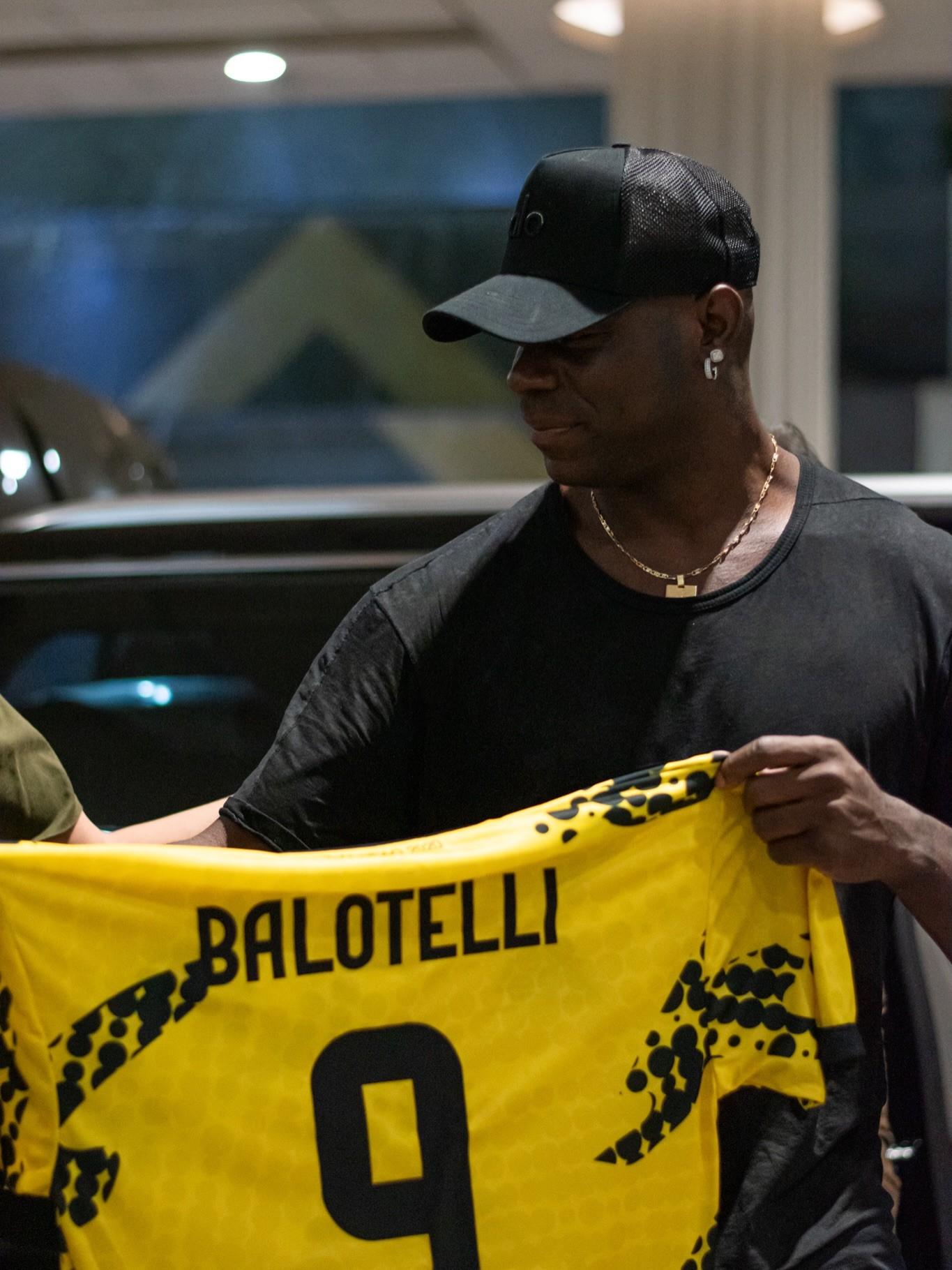 即將加盟,阿聯酋球隊迪拜協作曬巴洛特利手持9號球衣的照片