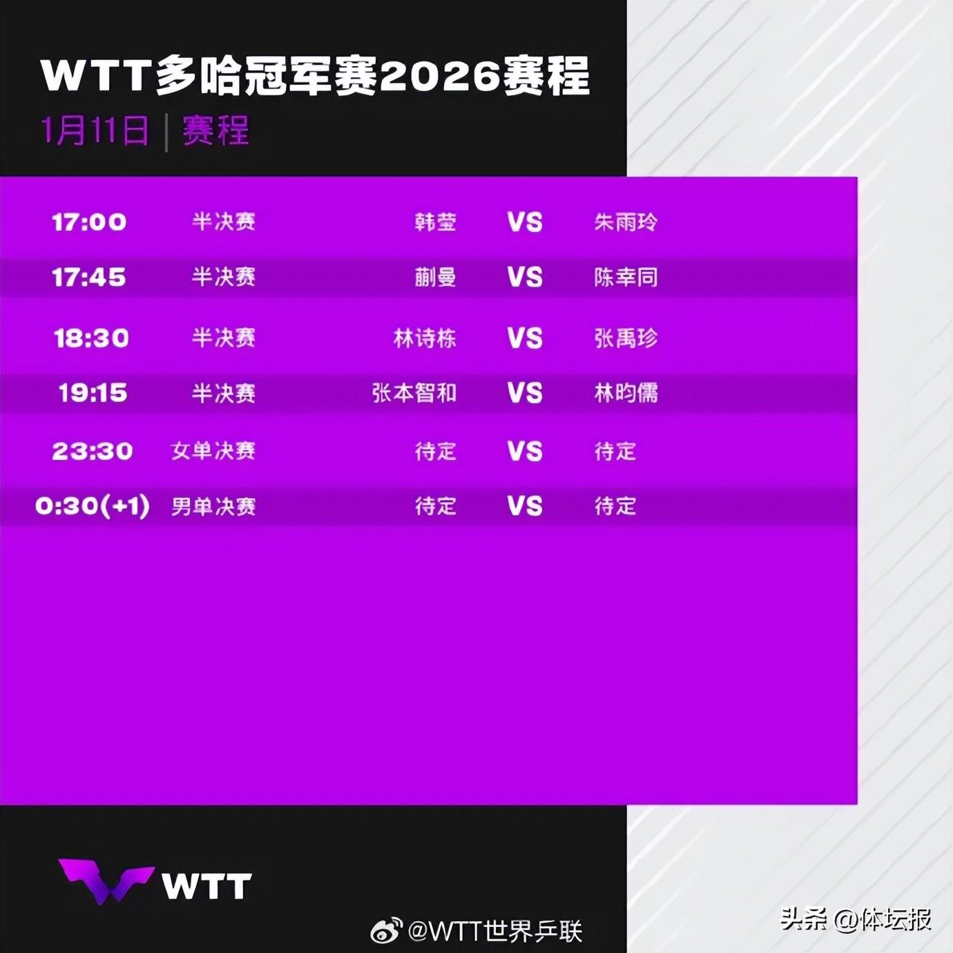 1月11日,WTT多哈冠軍賽進入最後一個比賽日,將上演男女單打半決賽和決賽較量。