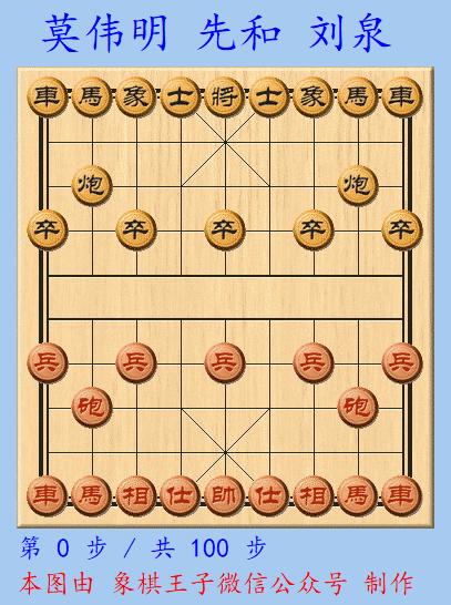 第六輪,後手迎戰軍人加廣東、湖北雙料冠軍獲得者,粵鄂雙棋王、綠林名將莫偉明,劉泉激鬥百手,弈入車象對炮雙仕,殘棋成平,第七輪,和則奪冠的劉泉輕鬆穩平。