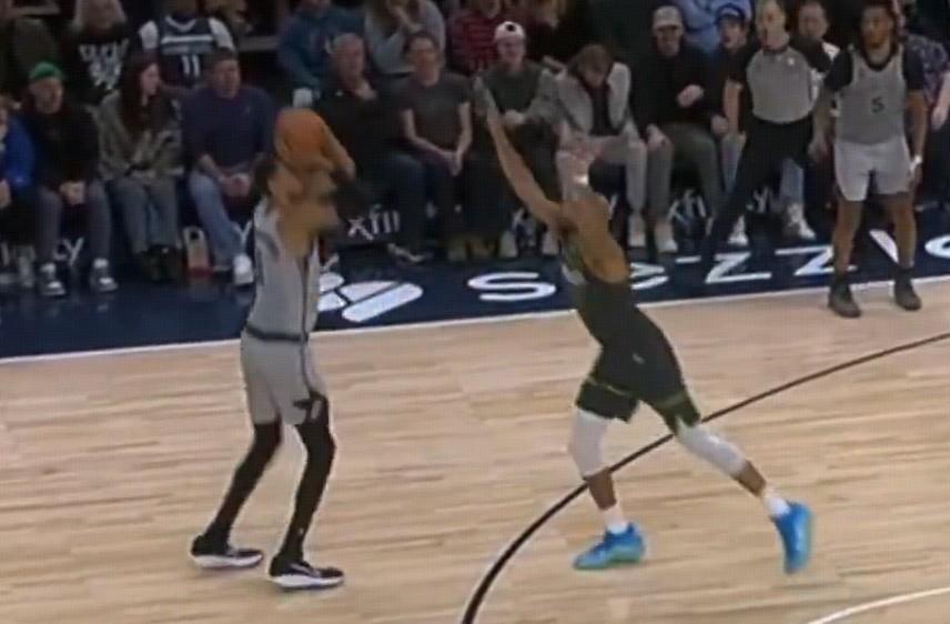 比賽進行到末節還剩7分25秒時,文班面對法國老鄉戈貝爾出手三分,戈貝爾墊腳文班,被吹罰一級惡意犯規+技術犯規。