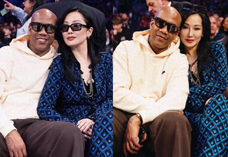 馬布裏夫婦看NBA!大秀恩愛,中國妻子好有氣質,顏值身材俱佳