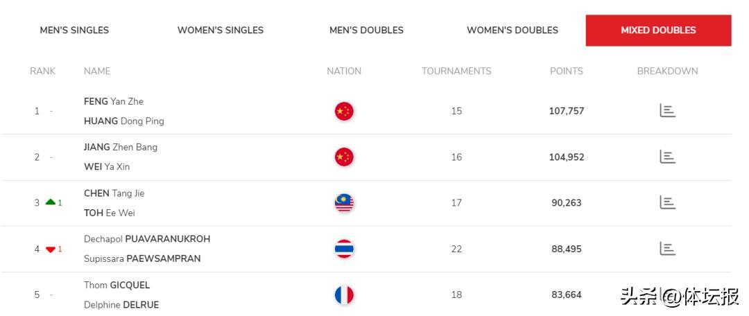 世界羽聯最新排名出爐,國羽三項“霸榜”