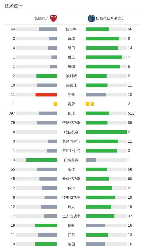 巴黎聖日耳曼女足4-0大勝第戎女足,梅爾韋耶-坎金加替補1射1傳,奧爾加-卡蒙娜傳射