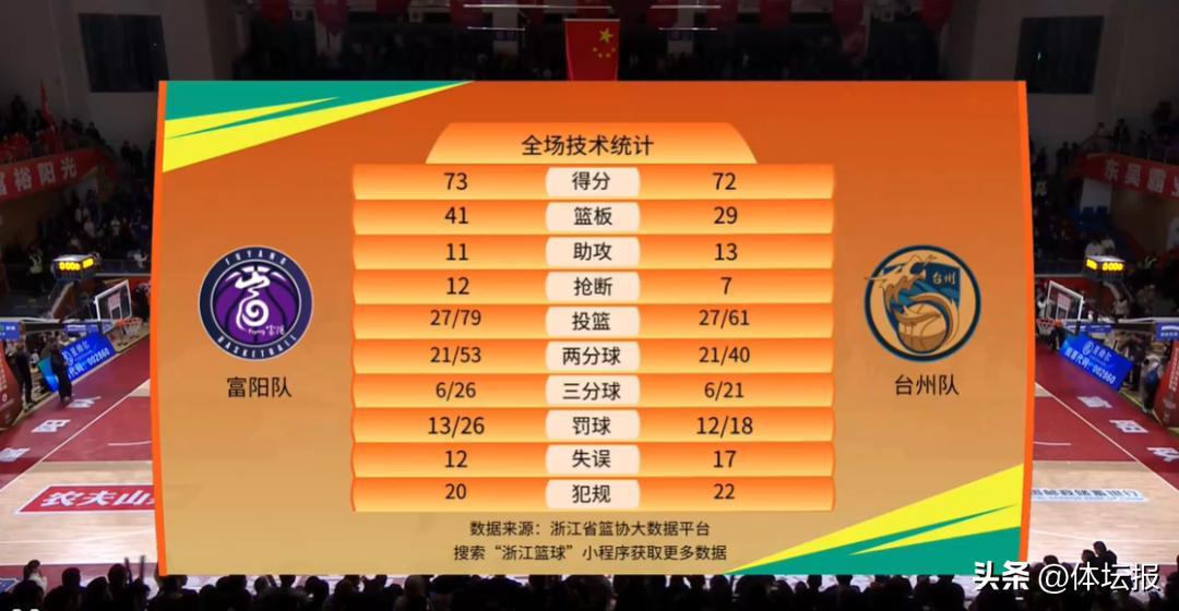 作爲B組第一名,富陽隊小組賽戰績優異,防守體系堅固如盾;而台州隊則以精準外線聞名,三分命中率高居小組第一,堪稱“利矛”。比賽前,這場“盾與矛”的碰撞便備受矚目。