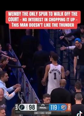 輸完不開心?不敵雷霆後文班亞馬是唯一直接離場的馬刺球員