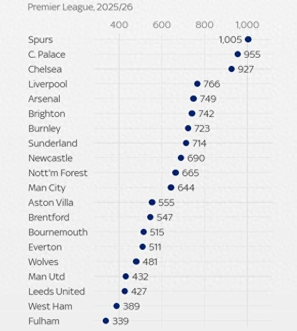據天空體育的統計報道:熱刺球員本賽季因傷病和疾病累計缺陣天數已達1005天,這一數字在英超所有球隊中高居榜首。