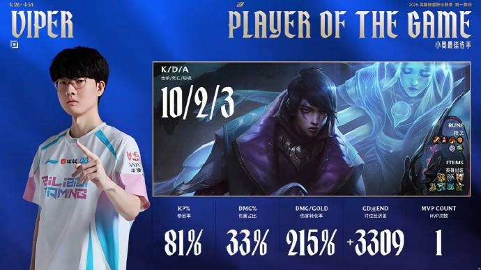 本局MVP給到Viper打出33輸出的厄斐琉斯!