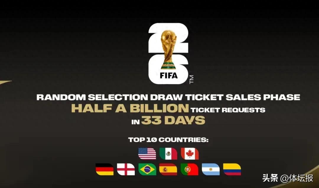 近日,據國際足聯統計,目前已經收到逾5億張要求購買2026年美加墨世界盃門票的申請。