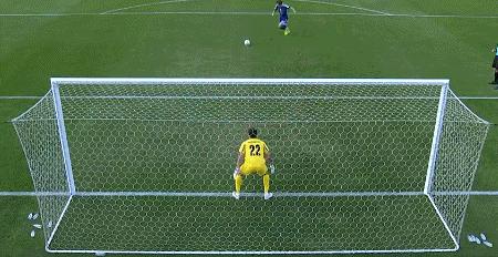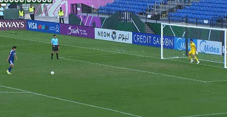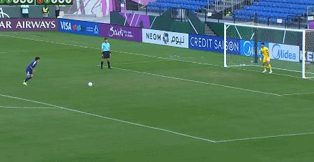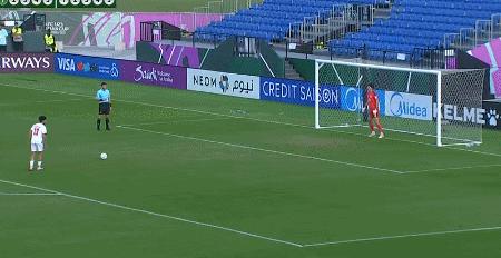 第二輪,日本隊道脅豊點球被撲後戲劇性地彈進球門