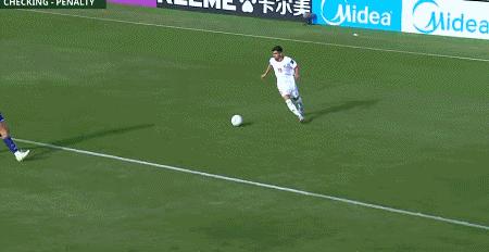 第67分鐘,古谷柊介禁區內倒地,主裁判觀看VAR後取消點球判罰