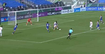 第30分鐘,阿賽扎插上破門,約旦U23 1-0領先日本U23