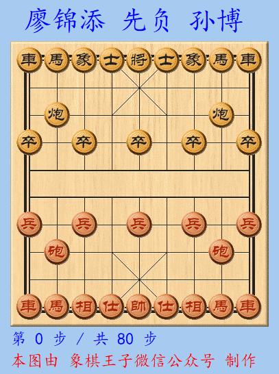 兩人這一仗,廖錦添以全速攻殺之力,打入車炮過河兵單缺相對車馬單士,95手黑方劣勢下超時,紅當即獲勝。
