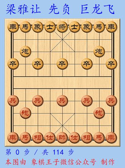 第七戰,十虎隊中03年學生棋王,灝昌杯等多賽冠軍梁雅讓執紅棋中盤強攻,25回合車送炮口,借悶宮之威,要喫黑炮和仕喫黑車,黑必丟一子,紅得子速勝。