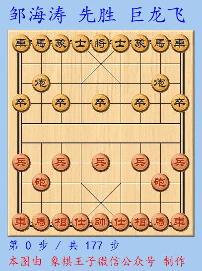 第九戰,十虎隊中元朗榮華杯冠軍、廉江棋王鄒海濤執紅棋攻打巨龍飛的擂臺,此仗,紅擺出了仕四進五,上仕局的超級冷門陣勢。