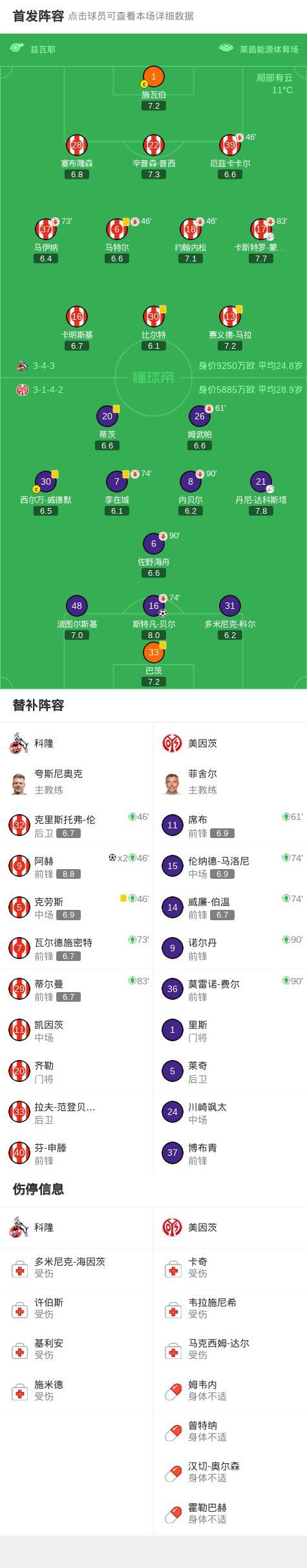 北京時間1月17日德國足球頂級聯賽 聯賽 第18輪,科隆主場對陣美因茨。科隆阿赫梅開二度。美因茨斯特凡-貝爾破門。最終比分科隆 2-1 美因茨。