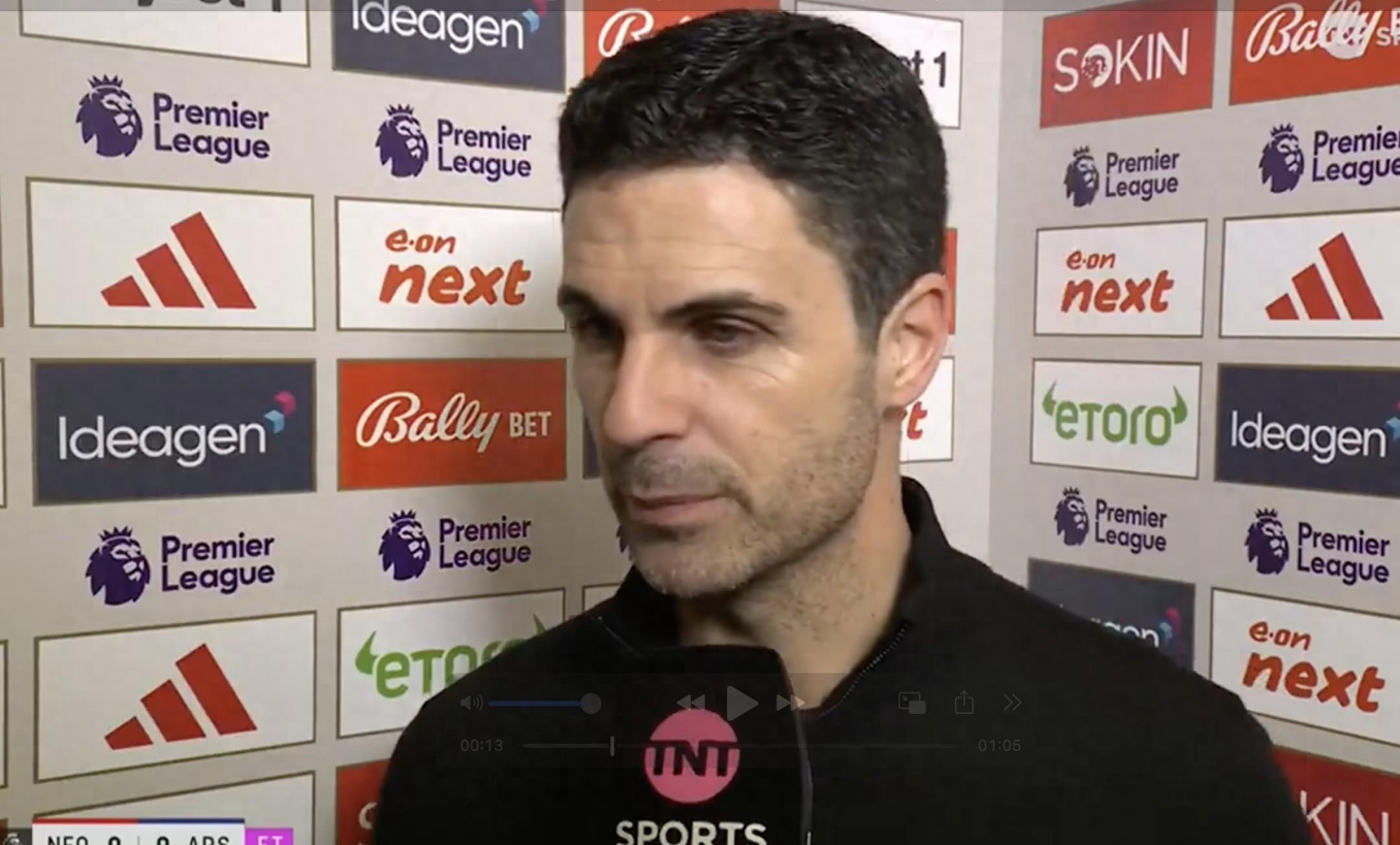 英超第22輪,阿森納客場0-0戰平諾丁漢森林,賽後,槍手主帥阿爾特塔接受了TNT體育的採訪。