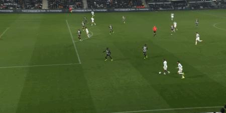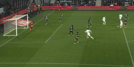 第33分鐘,埃莫森直塞,哈米德-特拉奧雷破門再下一城,馬賽3-0昂熱