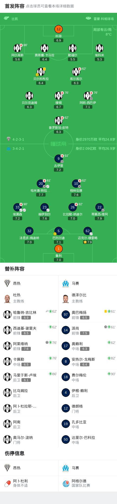北京時間1月18日,法國足球甲級聯賽第18輪,昂熱坐鎮主場迎戰馬賽。比賽中,馬賽率先發力,邁克爾-穆裏略送出助攻,古伊裏破門爲球隊取得領先。隨後埃莫森接連建功,先後助格林伍德與哈米德-特拉奧雷攻入進球,進一步擴大優勢。哈米德-特拉奧雷隨後完成助攻,蒂莫西-維阿接應得分,將上半場比分拉開。臨近上半場結束,阿明-西巴伊爲昂熱扳回一城,提振球隊士氣。進入下半場,赫伊別爾送出關鍵傳球,派尚得球后破門得分,再次鞏固馬賽領先位置。比賽尾聲,昂熱未放棄追分,哈魯納-吉比林送出助攻,阿萊維納破門完成絕響。最終全場比賽結束,昂熱以2比5不敵馬賽。